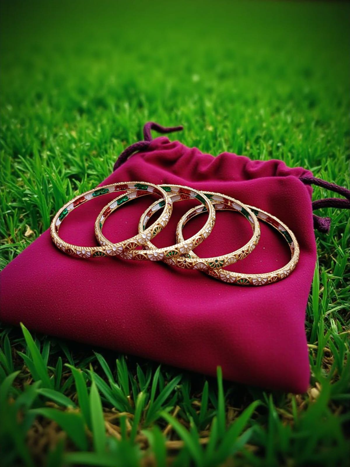 • Design: Elegant set of 4 bangles with traditional ethnic detailing.