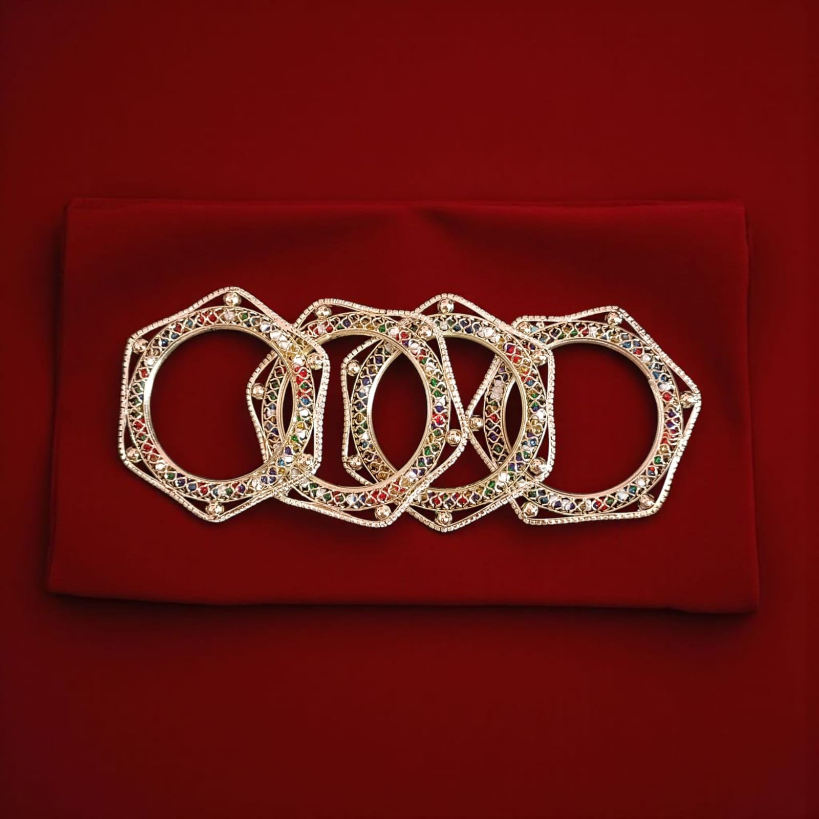 Festive Gold Designer Bangles – 4 Piece Jewelry Set