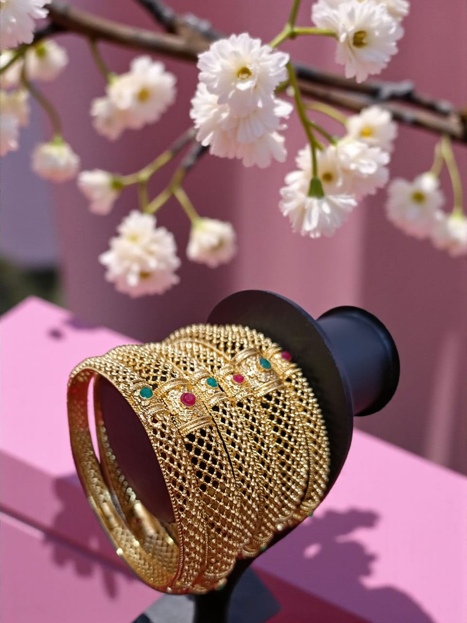 • Package Includes: 6 stylish bangles in a classic gold finish.